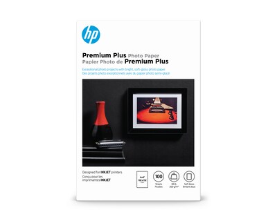 Get pristine, vibrant prints with this HP Premium Plus 4 x 6-inch 100-sheet soft glossy photo paper.