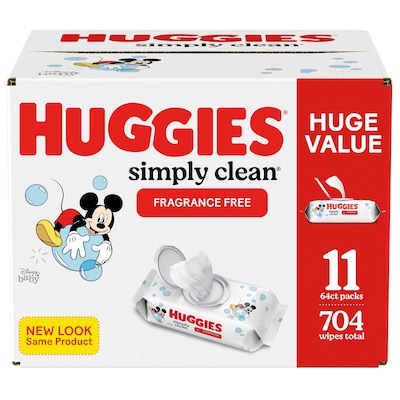 Huggies Simply Clean Baby Wipes with Aloe and Vitamin E, 64 Wipes/Pack, 11 Packs/Carton (53611)