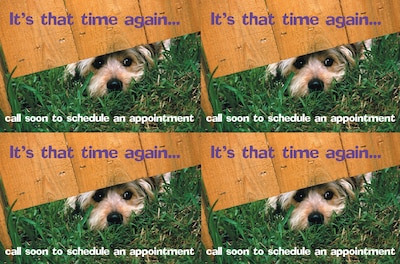 Attention-getting postcard captures your patients attention. The back of the postcard is blank so you can add a personalized message, using your own Laser Printer. Uncoated stock, perforated sheets. Four cards to an 8-1/2" x 11" sheet. 100 cards. Detached size: 4-1/4" x 5-1/2".