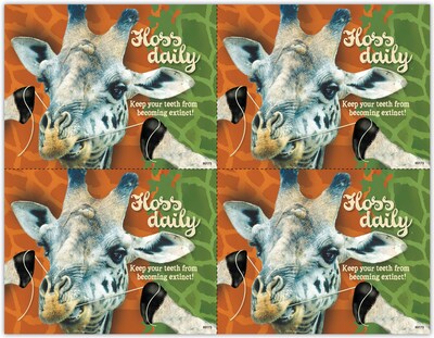 Attention-getting postcard captures your patients attention. The back of the postcard is blank so you can add a personalized message, using your own Laser Printer. Uncoated stock, perforated sheets. Four cards to an 8-1/2" x 11" sheet. 100 cards. Detached size: 4-1/4" x 5-1/2".