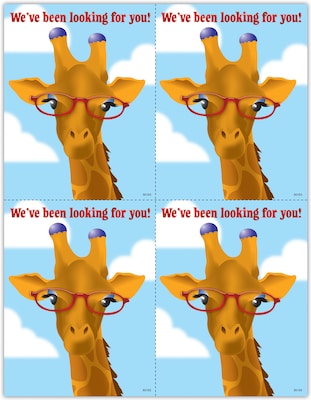 Humorous Recycled Postcards; for Laser Printer; Giraffe Glasses, 100/Pk