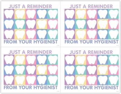 Order Hygienist Postcards; for Laser Printer; Tooth Quilt Reminder, 100/Pk today at Quill.com and get fast shipping. Stack coupons to get free gifts & extra discounts!