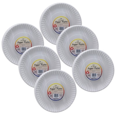 Hygloss® Paper Plates, White, 100 Per Pack, 6 Packs (HYG69109-6)