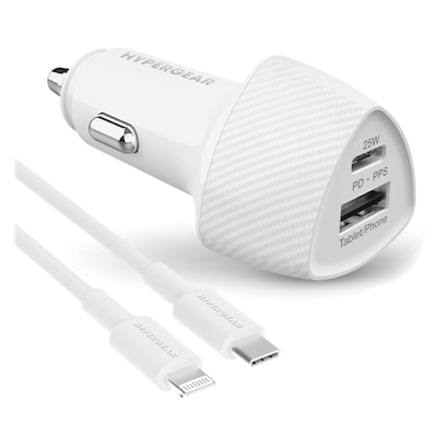 HyperGear SpeedBoost 25-Watt PD Lightning Car Kit, White (15623)