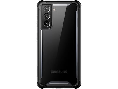 This i-Blason Ares black rugged case offers full-body protection against dust, dirt, and drops for your Samsung Galaxy S21 Plus. It features impact-resistant bumpers and port covers and is compatible with wireless charging.