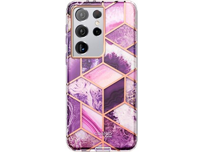 This i-Blason Cosmo marble purple case guards your Samsung Galaxy S21 Ultra against drops and falls. Elevated bezels keep your touchscreen and camera lens free from damaging surfaces, while precise cutouts allow easy access to all the ports and functions.