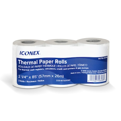 Iconex Thermal Cash Register Paper Rolls, 2 1/4" x 85', BPA Free, 3 Rolls/Pack (9078-0076)