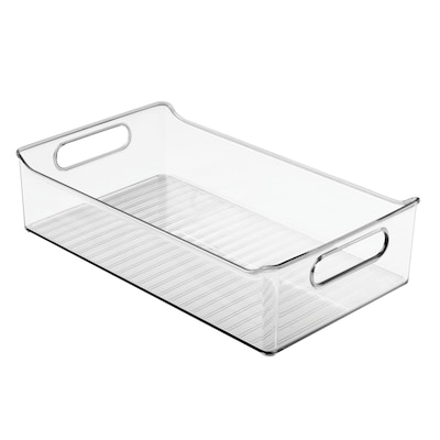Create a system of order with these sleek, clear plastic bins that organize office, craft, school supplies, or anything else that needs to be collected in one spot. Its transparent construction offers unobstructed views of your belongings, and its open-top design allows for easy accessibility, simplifying item location and retrieval. These iDesign Storage Bins feature comfortable carry handles and stack attractively for a smarter desk setup, creating your ideal workstation. With iDesign, you can live simply every day.