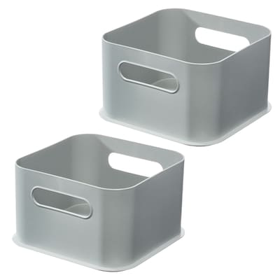 - SMART STORAGE - The iDesign Plastic Storage Bins create a functional solution anywhere you need; These grab-and-go bins feature an open-top design that allows for easy accessibility, simplifying item location and retrieval; The light gray finish lends a modern appearance that matches a variety of decor styles; Set of 2