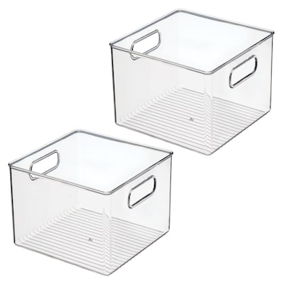 - SMART STORAGE - The iDesign Plastic Pantry Bin corrals kitchen essentials in modern style; Its generous capacity has room to store your most reached-for essentials, from fruits and vegetables to pantry staples to snacks and more; Each clear pantry bin blends seamlessly with your decor, allowing you to keep various kitchen essentials accessible and contained; Set of 2