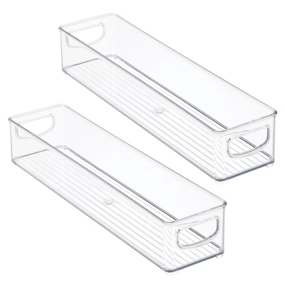 - SMART STORAGE - Reinvent your kitchen space with our iDesign Stackable Pantry Bins; These clear, open-top bin grants immediate reach-in access to food and other perishables, making it easy to find what you need; Shelf-friendly dimensions maximize space inside standard or counter-depth refrigerators as well as tight spaces inside pantries and cabinets; Set of 2