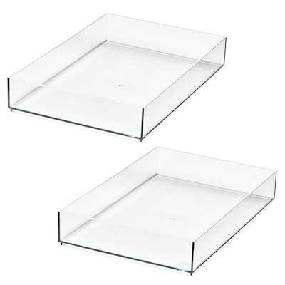 The iDesign Set of 2 Makeup Organizer Trays fit inside any standard-sized drawer to keep essentials handy. Its crystal-clear construction lends a modern flourish while allowing you to quickly access items inside for stress-free cosmetic organizing. With iDesign, you can live simply every day.