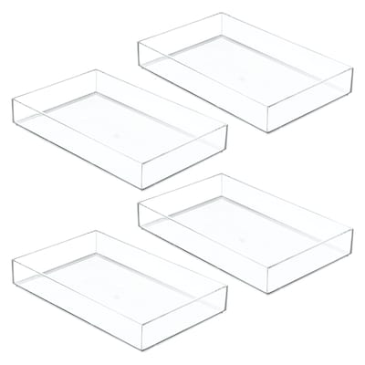- DURABLE DESIGN - Eliminate storage pain points inside cluttered drawers with our iDesign Clarity Makeup Drawer Organizer Tray; The crystal-clear plastic construction and shallow sides lend a modern flourish while allowing you to quickly inventory everything inside; Set of 4