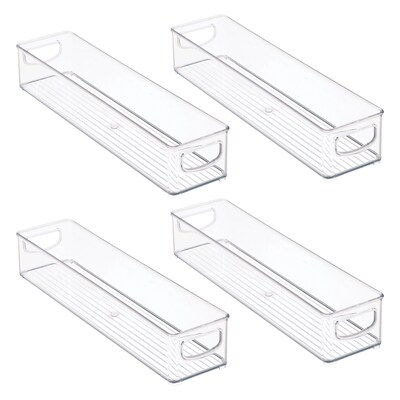 - SMART STORAGE - Reinvent your kitchen space with our iDesign Stackable Pantry Bins; These clear, open-top bin grants immediate reach-in access to food and other perishables, making it easy to find what you need; Shelf-friendly dimensions maximize space inside standard or counter-depth refrigerators as well as tight spaces inside pantries and cabinets; Set of 4