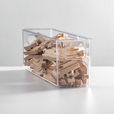 Create a system of order with these sleek, clear plastic bins that organize office, craft, school supplies, or anything else that needs to be collected in one spot. Its transparent construction offers unobstructed views of your belongings, and its open-top design allows for easy accessibility, simplifying item location and retrieval. These iDesign Storage Bins feature comfortable carry handles and stack attractively for a smarter desk setup, creating your ideal workstation. With iDesign, you can live simply every day.