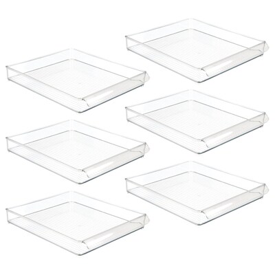 - SMART STORAGE - Find what you're looking for every time you open the refrigerator with the iDesign Stackable Fridge Tray; This low-profile tray keeps food items visible and easily accessible making this the perfect storage solution for your fridge, pantry, and beyond The open-top design grants immediate reach-in access to food and other perishables while the clear construction allows you to keep quick inventory without rummaging; Set of 6