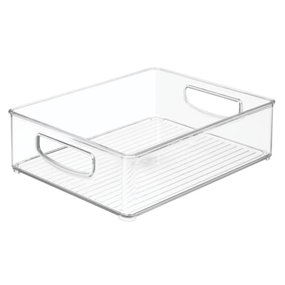 Create a system of order with this sleek, clear plastic bin that organizes office, craft, school supplies, or anything else that needs to be collected in one spot. Its transparent construction offers unobstructed views of your belongings, and its open-top design allows for easy accessibility, simplifying item location and retrieval. This iDesign Storage Bin features comfortable carry handles and stacks attractively for a smarter desk setup, creating your ideal workstation. With iDesign, you can live simply every day.