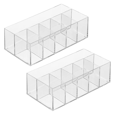 Maintain a neat and tidy workspace with this highly versatile desktop organizer. Five shallow sections and one longer section keep your most reached-for items upright and easily accessible, so you can quickly grab what you need without rummaging. Create your ideal workstation with this 6-Compartment Divided Desktop Organizer that is ideal for corralling small items from notecards and envelopes to rubber bands and sticky notes, and more. Its transparent construction offers unobstructed views of your belongings, and its open-top design allows for easy accessibility, simplifying item location and retrieval for a smarter desk setup.