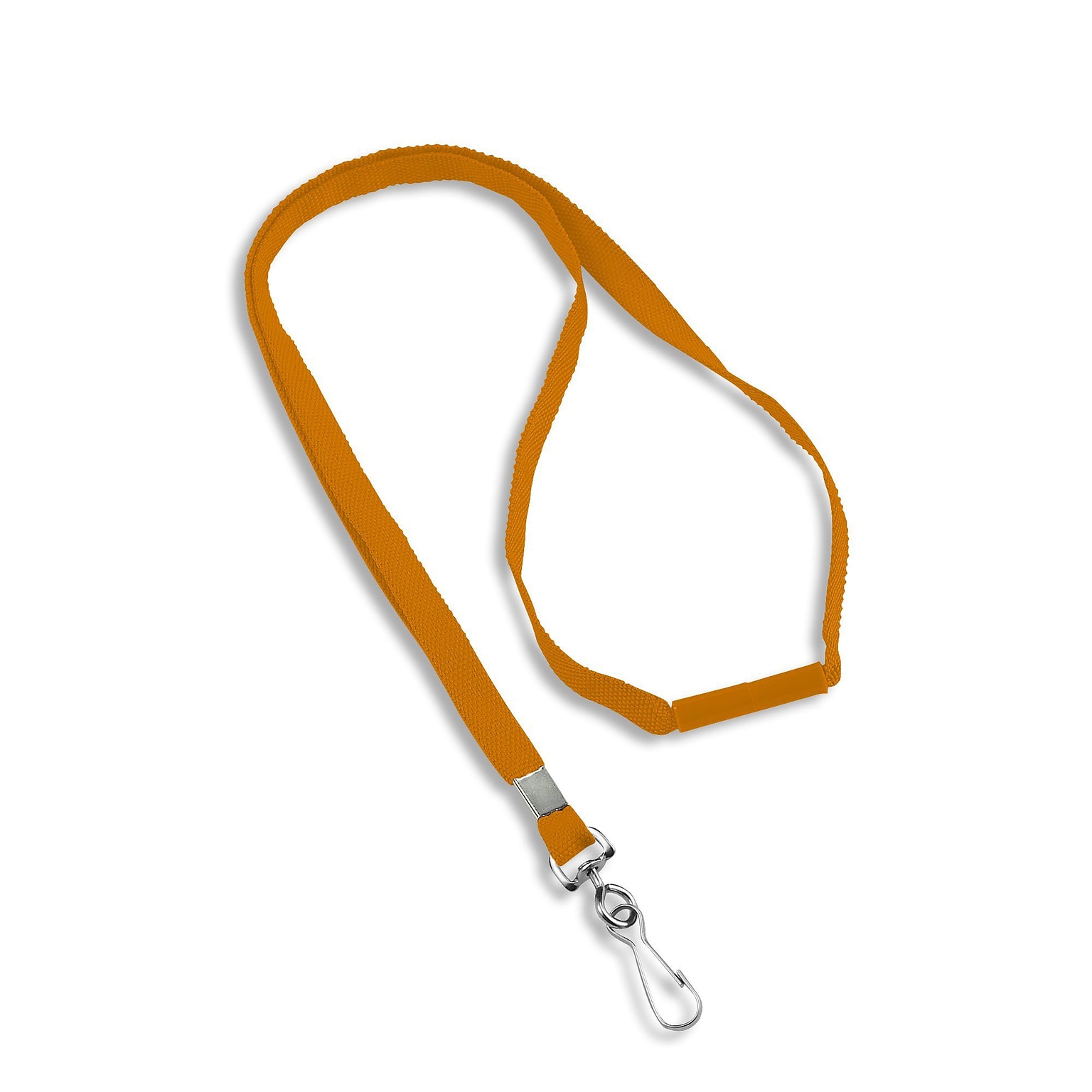 The 36" orange IDville Premium Flat Woven Breakaway Lanyards, available in a pack of 25, and features a J-Hook that securely holds your ID badge.