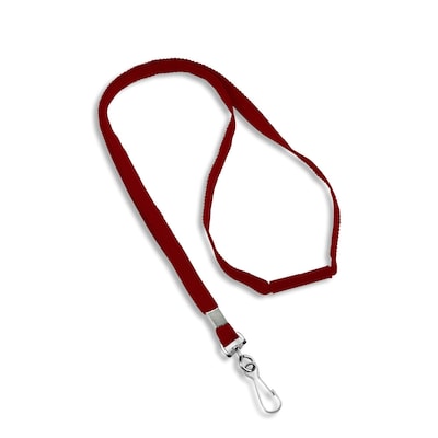 The 36" red IDville Premium Flat Woven Breakaway Lanyards, available in a pack of 25, and features a J-Hook that securely holds your ID badge.