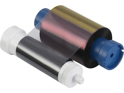 Install this printer ribbon into your ID card printer for continued functionality. During the printing process, a protective overlay film covers the card for protection against everyday wear and tear to increase the card's longevity, reducing how often you need to produce replacements. Designed for use with the Small Business and Business+ Edition ID Maker printer models, this ribbon is easy to install. The 300-print capability lets you produce detailed identification, membership or loyalty cards with text and full-color images for a professional look. This IDville card printer ribbon comes with a cleaning spool, which helps keep your equipment in top shape.