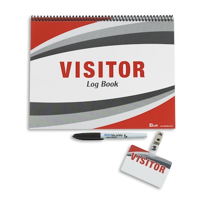 The IDville Visitor Login Bundle consists of a handy spiral bound log book, 25 badges with clips and one wet-erase marker in black that equips you to track your visitors''easily. Made of PVC, the wet erase visitor badges are sturdy and reusable. You can attach them to the badge clips for easy display of identification.