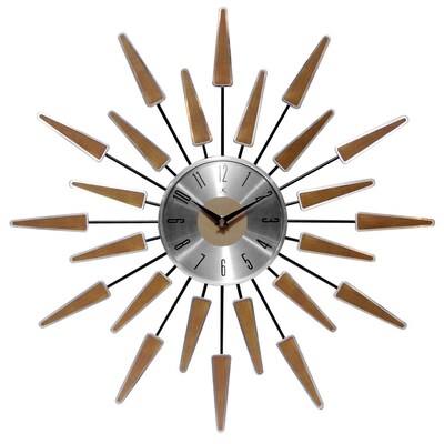 The 23 inch Satellite is part of Infinity Instruments mid-century modern collection. The Satellite is a recreation of a vintage wall clock with metal trimmed wood rays and brushed aluminum dial with walnut accents. This clock will be the finishing touch to your mid-century modern decor.