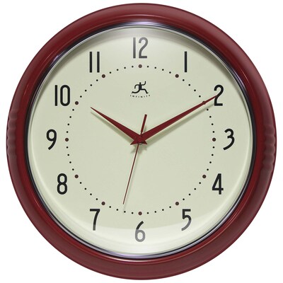 Infinity Instruments Round Retro Wall Clock, Aluminum, 9.5" (10940-RED)