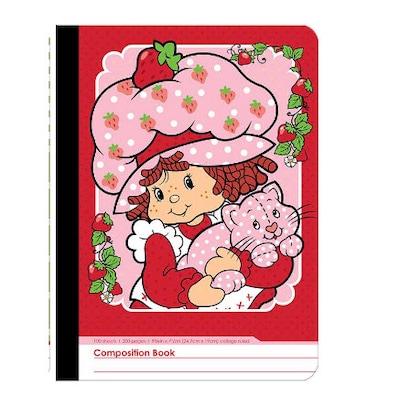 Inkology Strawberry Shortcake College Ruled, 100 sheet Composition Book. Take clear, easy-to-read notes with this Inkology 7.5 x 9.75-inch red and white composition book. Composition notebook is great for permanent note-taking in class or at home. 100 sheets of college-ruled paper for comfortable notetaking