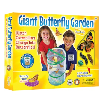 Enjoy this giant-sized version of Insect Lore's popular Original Butterfly Garden With Voucher. Children and adults alike will be transfixed by the transformation of 5 caterpillars into beautiful Painted Lady Butterflies! Watch the amazing changes for approximately three weeks, then release your adult butterflies into the wild! This kit also includes Painted Lady Butterfly Life Cycle Stages - the perfect educational complement to your butterfly-raising project. Includes: collapsible and reusable 18-inch tall Deluxe Habitat, pipette for butterfly feeding, extensive Caterpillars to Butterflies Instruction Guide, a voucher to redeem 5 caterpillars, and Painted Lady Butterfly Life Cycle Stages Figures.