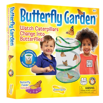 Insect Lore® Live butterfly garden is ideal for ages 4 - 14 and is ideal to learn about metamorphosis butterflies. Garden measuring 11 1/4" yields 5 caterpillars and contains activities, resources as well as ideas.