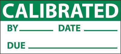 National Marker " Calibrated" Inspection label in green/white color measures 1" x 2 1/4" and is made of adhesive vinyl material for added durability.