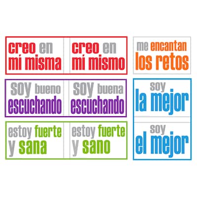 Inspired Minds Spanish Poster Booster Sets are intentional printed simple, yet colorful, to offer an impactful and creative way for teachers to help children gain positivity and build character for a successful and fulfilling life. Being surrounded by affirmations on a daily basis will build a positive belief system to last a lifetime. Posters measure 11" x 17". Pack of 5.