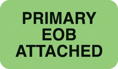 - 500 Fluorescent Green "Primary EOB Attached" labels per roll