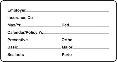 White "Insurance Information" label helps you keep patient charts current with insurance and dental information
