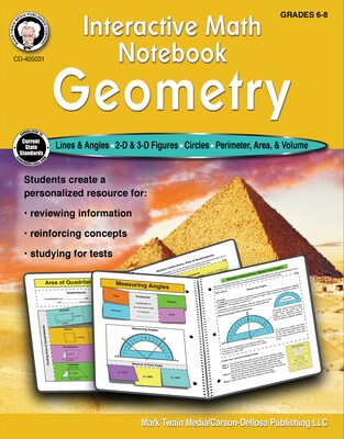 Encourage students to create their own learning portfolios with the Mark Twain Interactive Math Notebook: Geometry. This interactive notebook includes 28 lessons in lines and angles, 2D and 3D figures, circles, perimeter, and more.
