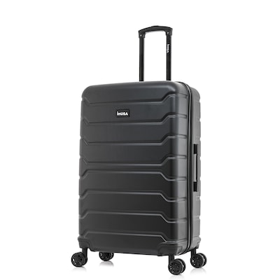 Improve your travel experience with this InUSA Trend four-wheel spinner luggage. Made of lightweight PC/ABS engineered material with a brushed finish, this luggage features a push-button locking internal retractable trolley system and four dual 360-degree silent spinner wheels for smooth, effortless mobility. The hard-flex construction offers maximum strength, durability, and resistance to water and scratches. Four side studs let the luggage stand on its side, while the top and side ergonomic gel handles provide comfortable and easy lifting.