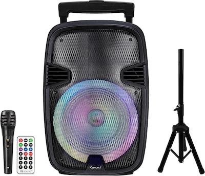 IQ Sound IQ-5715DJBT 5-inch Portable Bluetooth Speaker with TWS, Bluetooth 5.0, Colorful LED Light Show, Multiple Connectivity Options, FM Radio, Mic Input, Remote Control, and Tripod