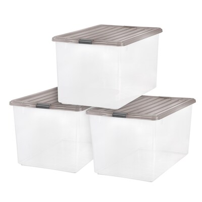 IRIS USA® Clear Boxes 144 Qt Buckle Lid - Gray - Set of 3