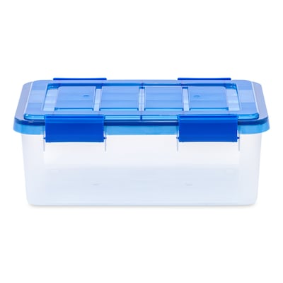 Iris 16 Quart Ultimate Clear Plastic Latching Storage Bin, Blue (500196)