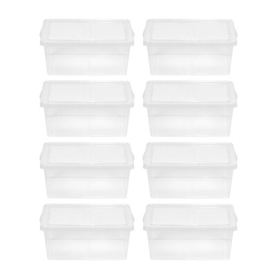 IRIS USA's 17 quart snap top storage bins are great for storing clothes, boots/shoes, and most household items. The snap tight lids securely fastens to the body and keeps contents in place. The clear body allows you to quickly identify the contents and access what you need. These plastic storage bins are stackable, the indexed lid let's you stack easily and securely to maximize your storage space. Set of 8.
