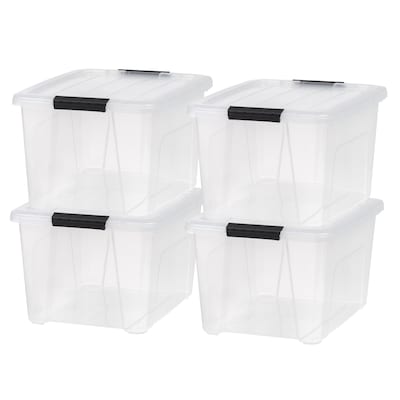 Iris 32 Quart Storage Container with Latching Lid, Plastic, Clear, 4/Pack (500297)