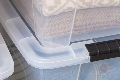 Life is messy and chaotic, so take control over what is closest to you. Take IRIS USA's large plastic storage bin with secure lid and buckles in your hands and organize the world around you. The crystal clear design of our large plastic storage bin tote with lid makes it easy to find exactly what you're looking for while the grooves on the lid and body create a stable and secure stacking experience. The large plastic totes and lids are also nestable when not in use to save on storage space. The buckles latches onto the durable plastic lid to keep your things safe, secure, and pristine inside. Enjoy organizing by utilizing our 13, 20, 32, and 60 Quart plastic storage totes. From simple organization of a cupboard to cleaning up the clutter in your rooms, sending your kid off to college or moving into a new house, we've got you covered with these selections. Let's get organizing and make life a little easier.