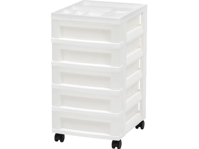 Is your desk overrun with sloppy stacks of paper? Too much clutter in your craft space? The Iris five-drawer cart can help you get organized in no time. The five shallow drawers hold everything from craft supplies to reams of paper, so your space stays tidy. Each drawer accommodates letter-size (8.5" x 11") paper, and the built-in divided organizer top keeps extra-small items organized and accessible.