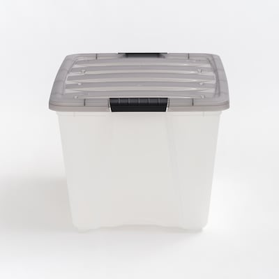 Enjoy quick and easy access to your stored items with IRIS USA’s 53 Qt. Stack and Pull Plastic Storage Bin. The built-in pull handle on the bottom allows you to safely grab and slide your storage bin with ease, whether it’s up high or down low. With 35 lbs. of storage capacity, this is the ideal storage solution for organizing closets, dorm rooms, pantries, cabinets, and more! The space-effective and stackable 13.25-gallon design is great for holding office supplies, craft supplies, cleaning supplies, shoes, and other household goods. The storage container buckles latch securely with the durable lid to lock contents inside. When not in use, the empty storage containers nest to save even more space. This versatile storage bin is see-through for easy identification of contents and is proudly made in the USA with BPA-free plastic. Easily store and access your household items with IRIS USA’s Stack and Pull Plastic Storage Bins, available in 5.75 Qt., 12.59 Qt., 19 Qt., 32 Qt., 40 Qt., 53 Qt., and 72 Qt.