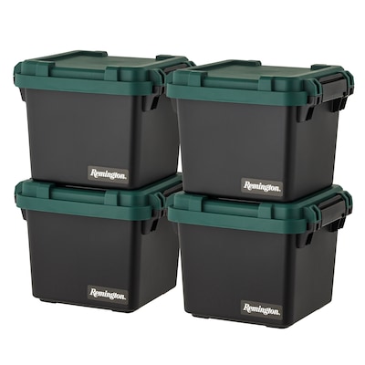 Iris Heavy Duty 30 Qt. Storage Bin with Latching Lid, Plastic, Black, 4/Pack (500343)