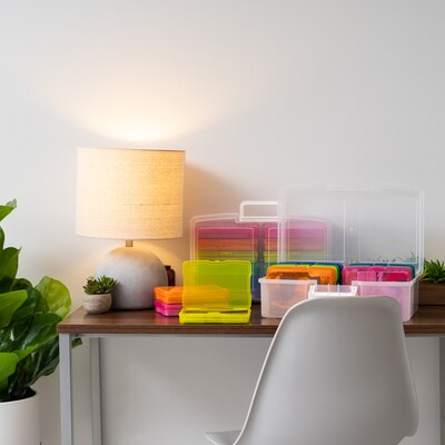 Iris Hinged Closure Plastic Storage Bin with 12 Multi-colored Photo Cases, 2/Pack (500055)