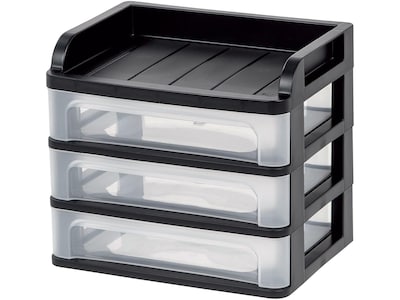 Iris Medium 3-Drawer Desktop Storage, Plastic, Black/Clear (150181)