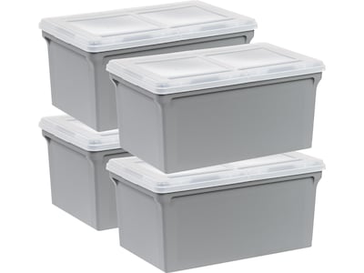 Iris Plastic File Box with Split Lid, Letter Size, Gray, 4/Pack (500167)