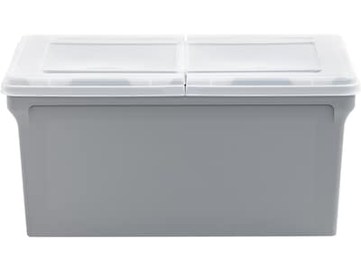 Iris Plastic File Box with Split Lid, Letter Size, Gray/Translucent White (500228)